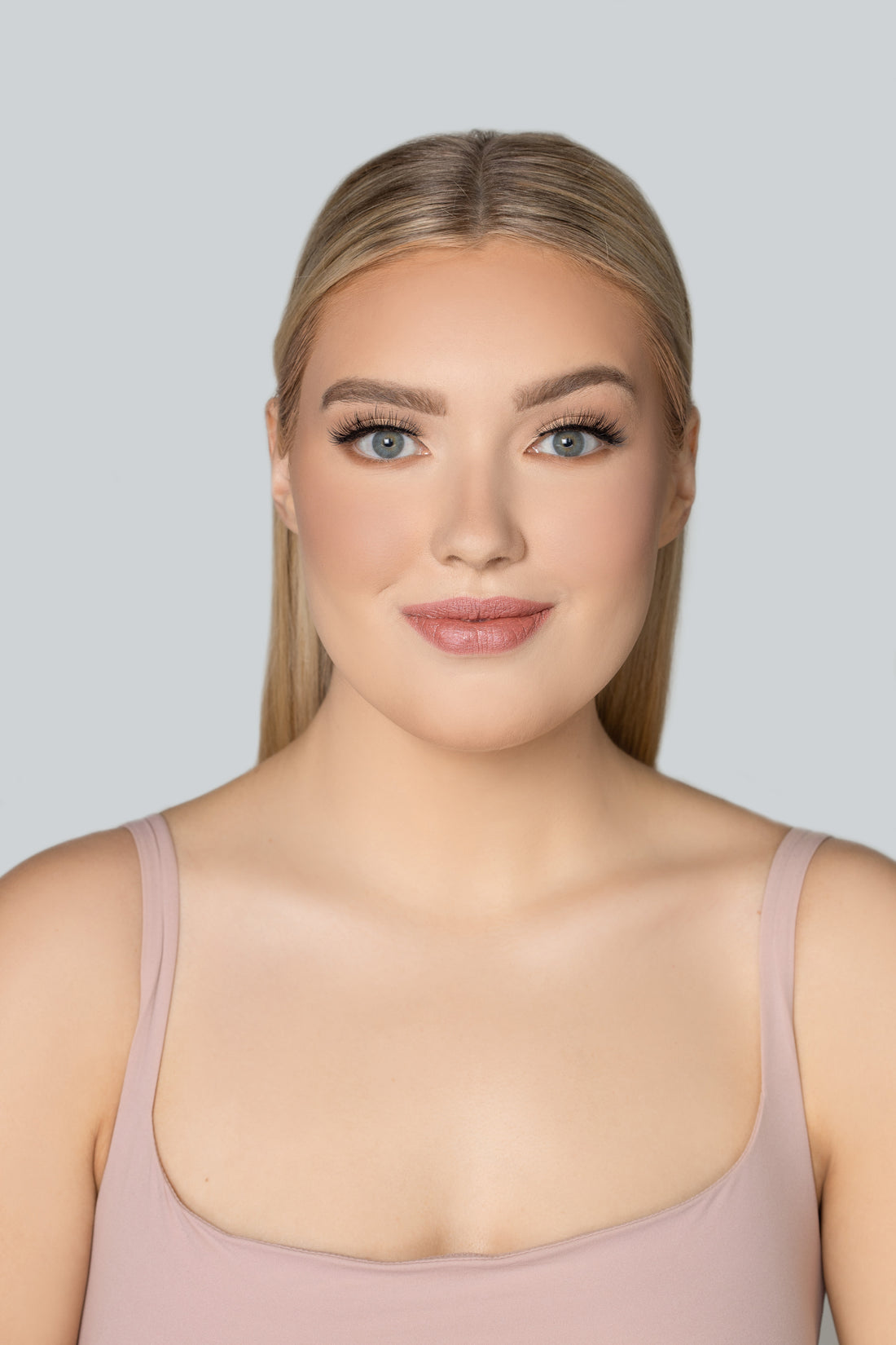 2. Apply a neutral shade of blush beneath the cheekbones to add dimension.