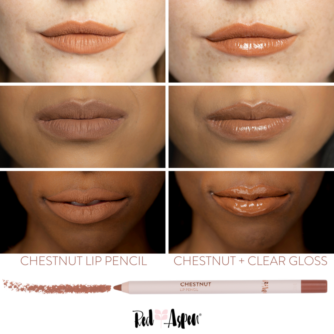 3. Fill in lips fully for a one-step matte look, or swipe on some of your favorite Red Aspen Lip Gloss in a shine or shimmer finish!