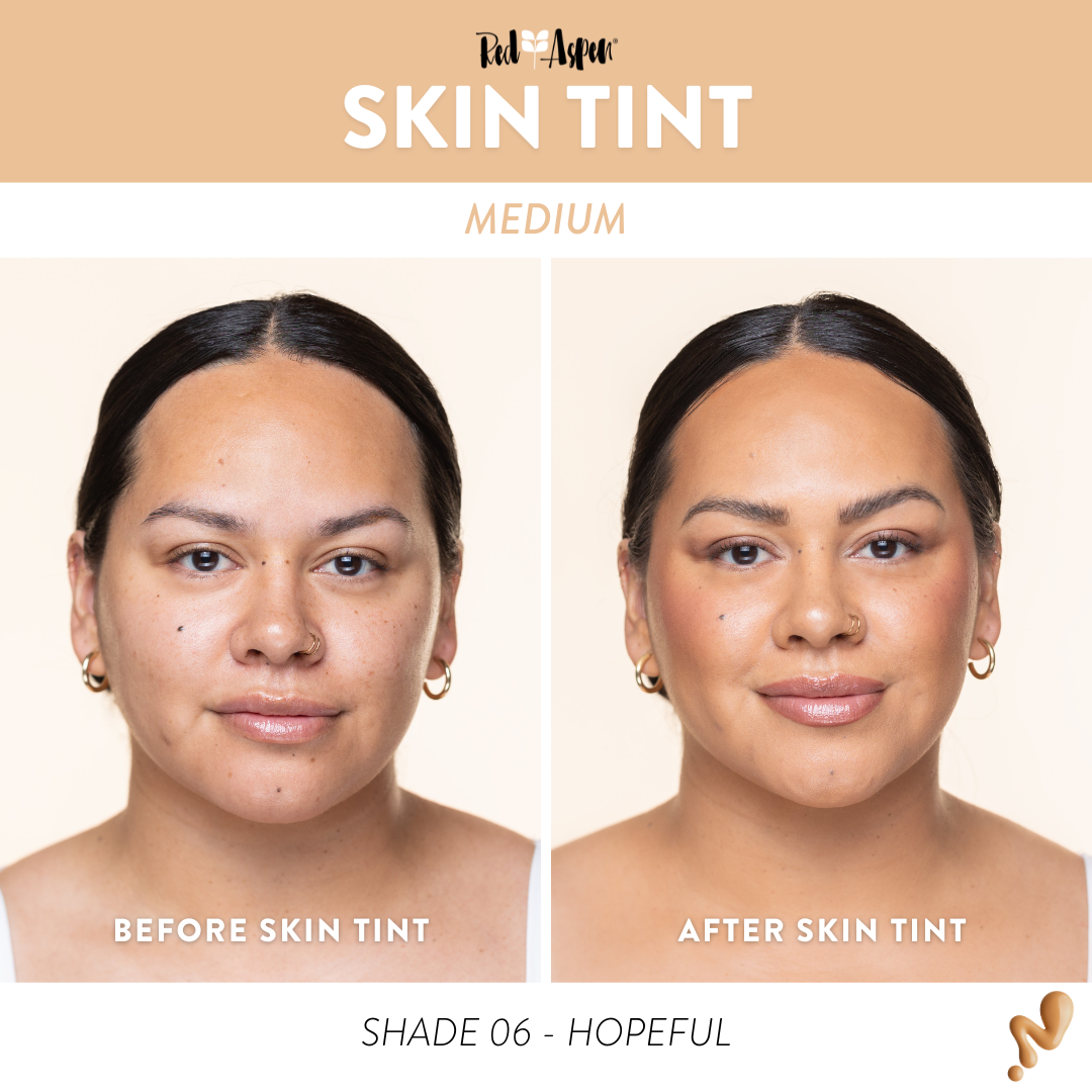 Say hello to approachable, flexible, and customizable coverage and a radiant finish with Red Aspen Skin Tint! Packed with good-for-you ingredients like Niacinamide, she’s a buildable, liquid formula suitable for all skin types, formulated to help brighten and smooth your skin’s texture and reduce the appearance of dark spots. Best of all, she’s clinically tested to be non-comedogenic, meaning she’s specially formulated to not clog or block your pores!