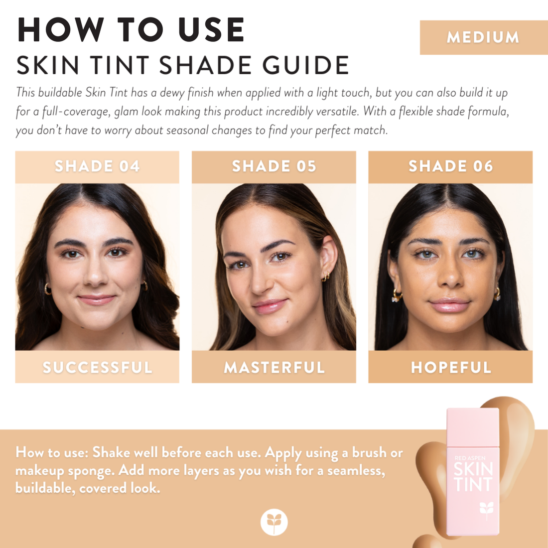 Say hello to approachable, flexible, and customizable coverage and a radiant finish with Red Aspen Skin Tint! Packed with good-for-you ingredients like Niacinamide, she’s a buildable, liquid formula suitable for all skin types, formulated to help brighten and smooth your skin’s texture and reduce the appearance of dark spots. Best of all, she’s clinically tested to be non-comedogenic, meaning she’s specially formulated to not clog or block your pores!