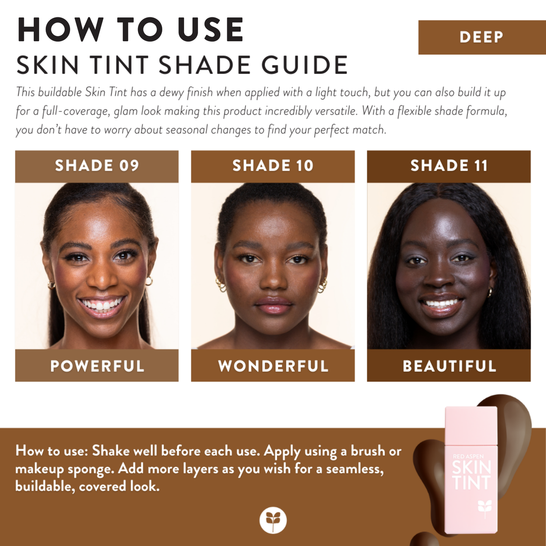 Say hello to approachable, flexible, and customizable coverage and a radiant finish with Red Aspen Skin Tint! Packed with good-for-you ingredients like Niacinamide, she’s a buildable, liquid formula suitable for all skin types, formulated to help brighten and smooth your skin’s texture and reduce the appearance of dark spots. Best of all, she’s clinically tested to be non-comedogenic, meaning she’s specially formulated to not clog or block your pores!