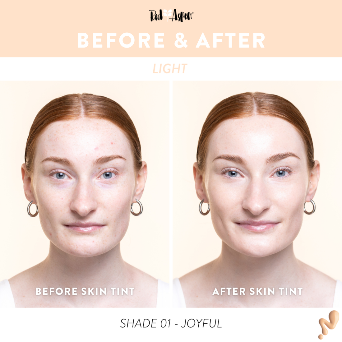 Say hello to approachable, flexible, and customizable coverage and a radiant finish with Red Aspen Skin Tint! Packed with good-for-you ingredients like Niacinamide, she’s a buildable, liquid formula suitable for all skin types, formulated to help brighten and smooth your skin’s texture and reduce the appearance of dark spots. Best of all, she’s clinically tested to be non-comedogenic, meaning she’s specially formulated to not clog or block your pores!