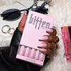 Read Between the Lines, Linney extra long ballerina press on nails come in a pink shiny finish with a glazed and ombre nail design.