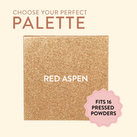 A customizable, magnetic makeup palette system available in 4-pan and 16-pan palettes, designed to hold and organize your favorite Red Aspen Pressed Powders in a variety of luxurious shades including velvety mattes, rich metallics, stunning shimmers, and gorgeous pressed glitters.
