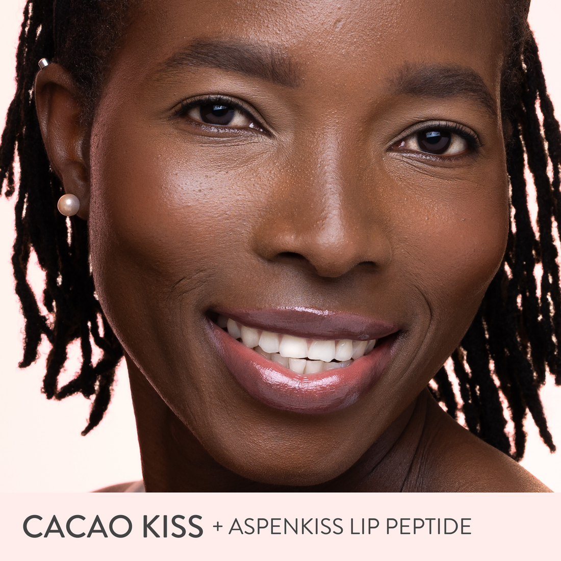 After blotting excess lipstick, use AspenKiss Lip Peptide for added hydration or Aspen Set for a matte finish.