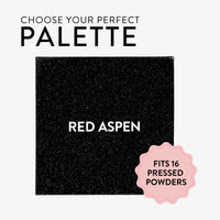 A customizable, magnetic makeup palette system available in 4-pan and 16-pan palettes, designed to hold and organize your favorite Red Aspen Pressed Powders in a variety of luxurious shades including velvety mattes, rich metallics, stunning shimmers, and gorgeous pressed glitters.