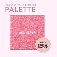 A customizable, magnetic makeup palette system available in 4-pan and 16-pan palettes, designed to hold and organize your favorite Red Aspen Pressed Powders in a variety of luxurious shades including velvety mattes, rich metallics, stunning shimmers, and gorgeous pressed glitters.