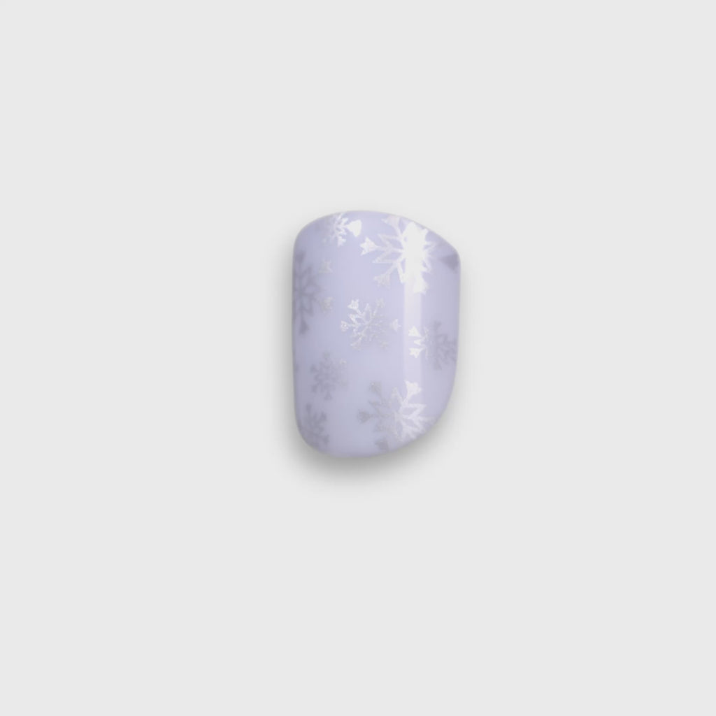 Santa's Squad: Vixen short square press on nails come in a blue shiny finish with a snowflake nail design.