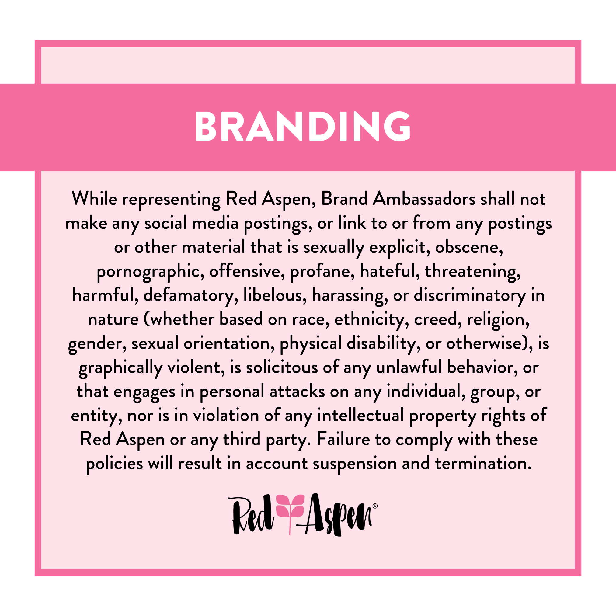 Remember that with every post, comment, and like on social media, you’re not only representing yourself, you’re also representing Red Aspen. We believe in creating a culture of kindness, authenticity, and inclusion. This is proudly stated in our Red Aspen Policies and Procedures. This page is to help educate and inform you of our policies. Take a look at the snapshot items, but make sure to read through the full policies booklet.