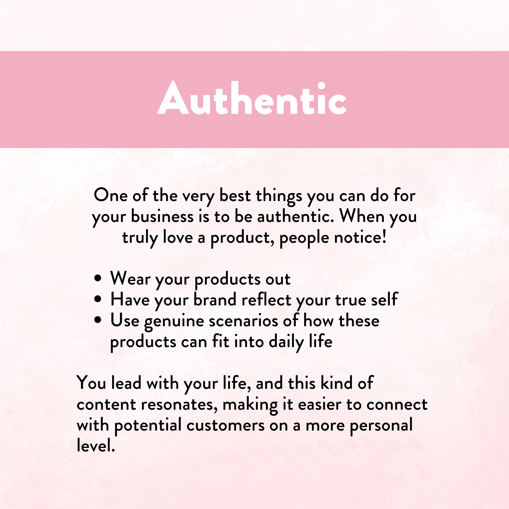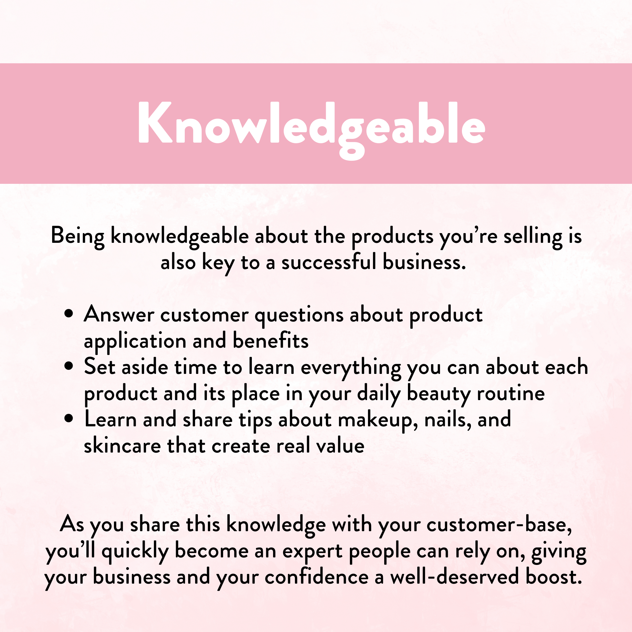 We call this concept “Share, Don’t Sell,” and we’ve designed a whole video for you to go over how this concept works. Scroll down to see how we highlight the three key points of growing your new beauty business by being authentic, being social, and being knowledgeable.
