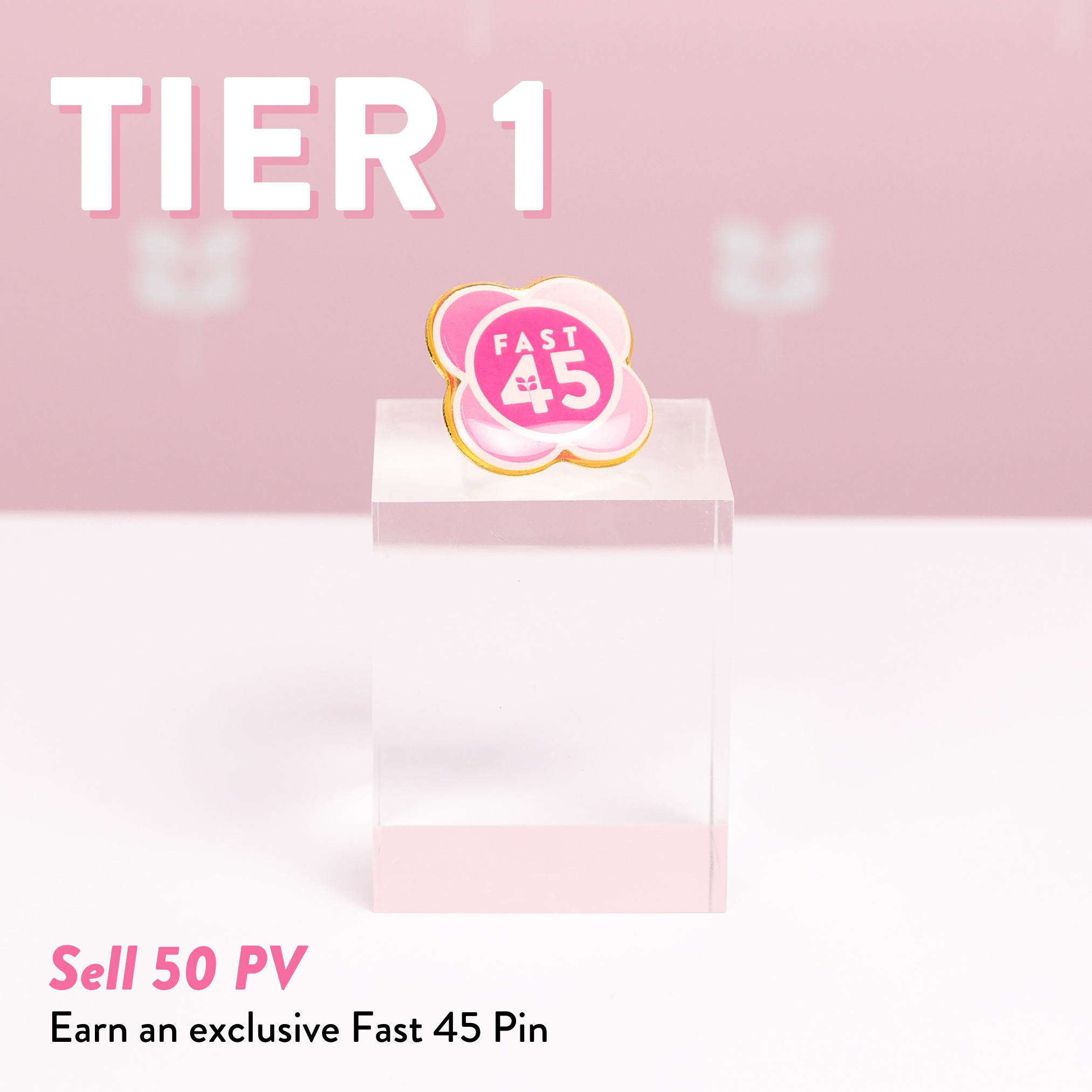 We’ve split our Fast 45 rewards into tiers, meaning you’ll earn the following rewards once you reach the associated PV (Personal Volume) amount. The tiers are as follows: