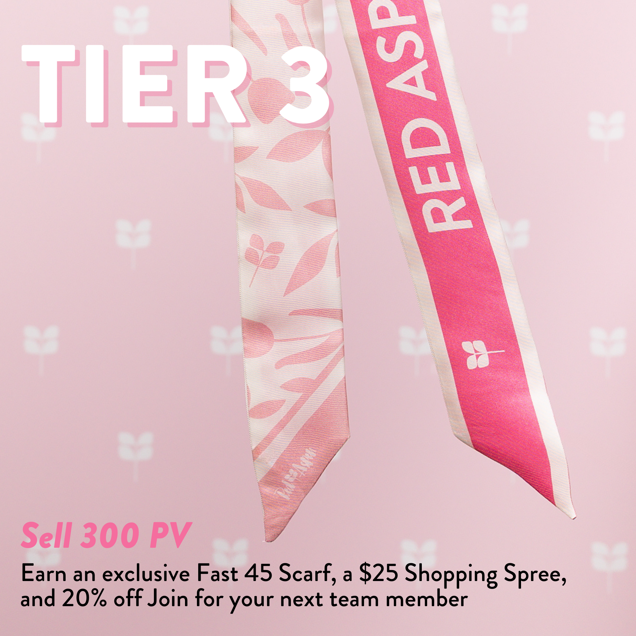 Tier 3 (300PV) - $25 Shopping Spree + Fast 45 Scarf + 20% off Join