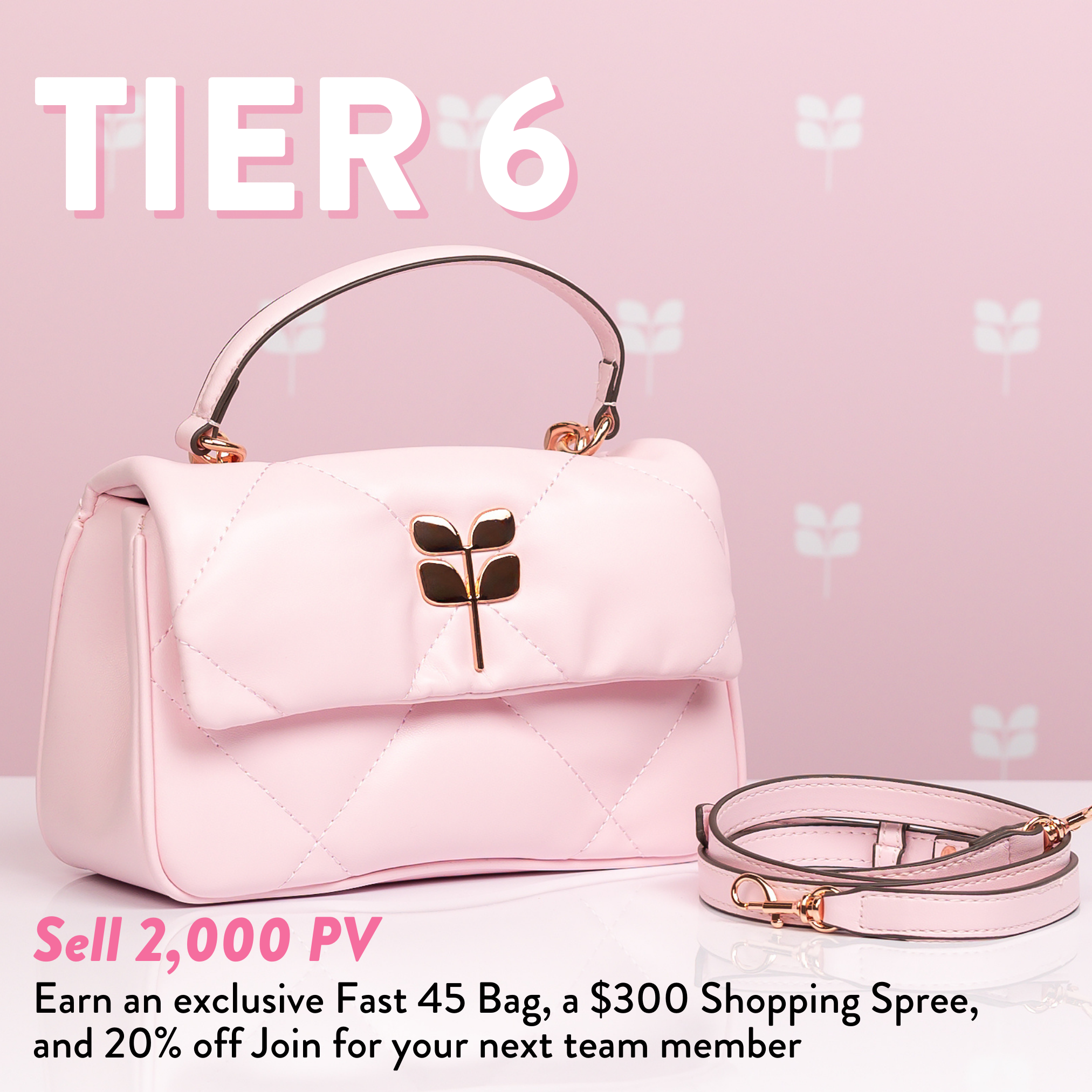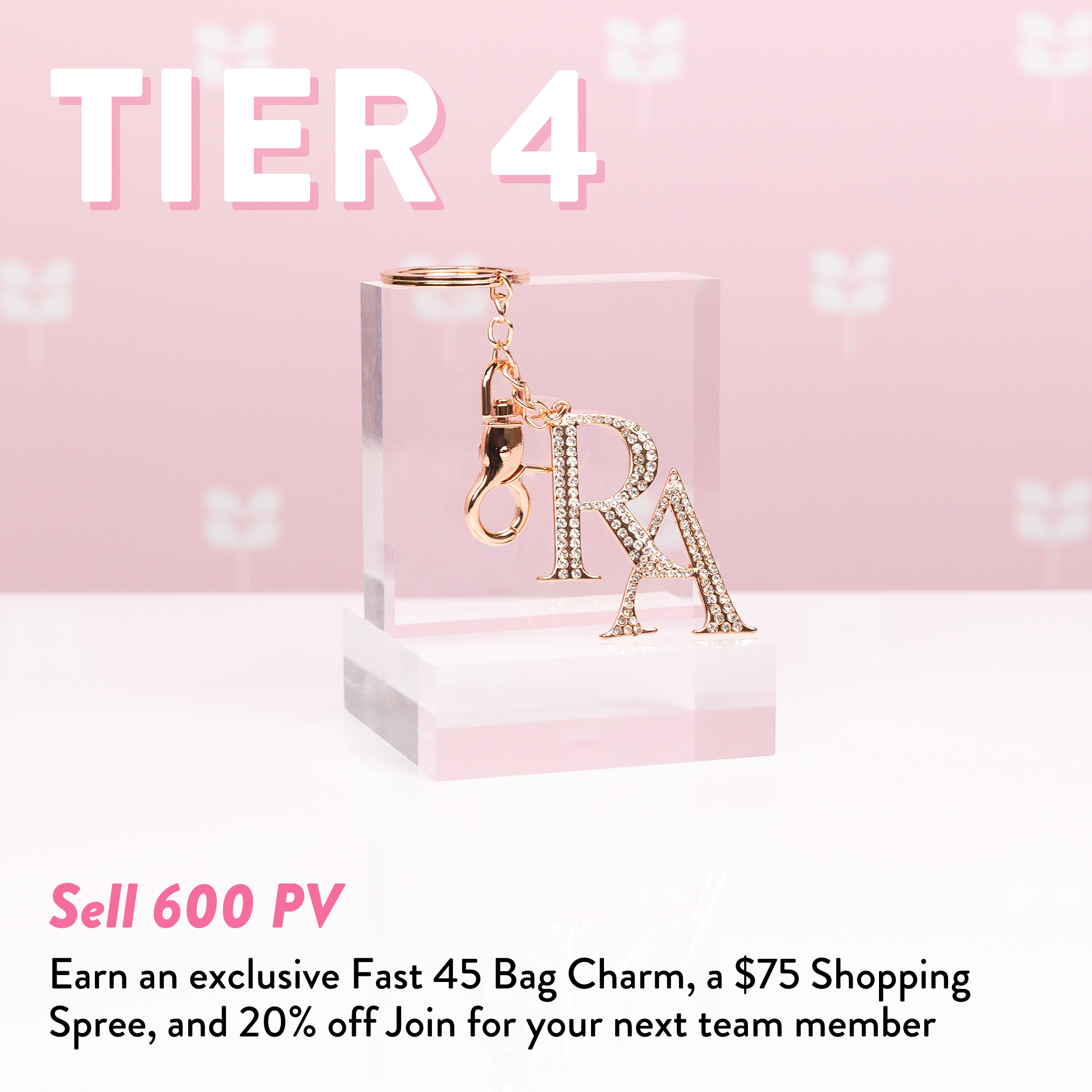 Tier 4 (600PV) - $75 Shopping Spree + Fast 45 Bag Charm + 20% off Join + 20% off Join for your sponsor