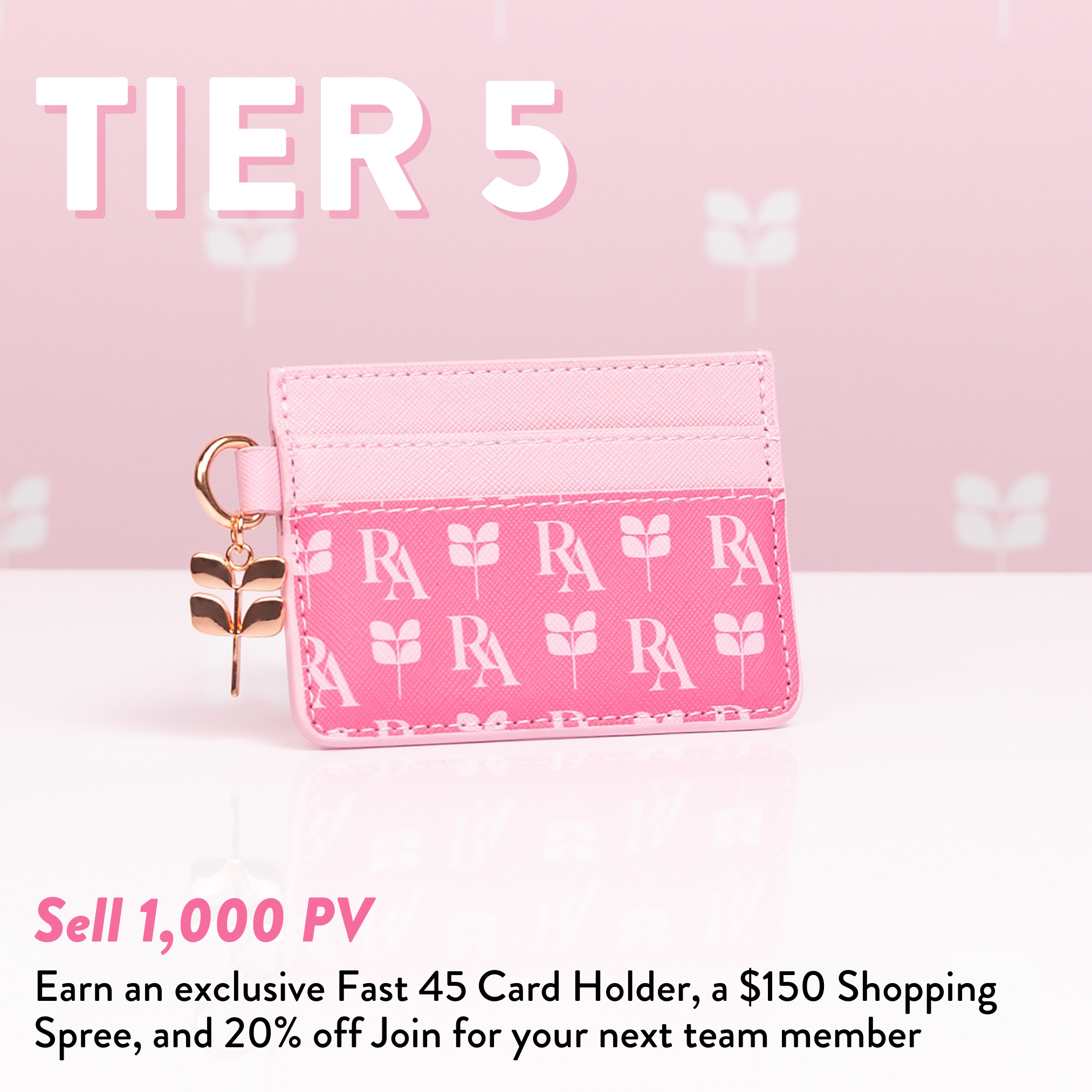 Tier 5 (1000PV) - $150 Shopping Spree + Fast 45 Card Holder + 20% off Join + $25 Merch Credit for Sponsor + 20% off Join for your sponsor
