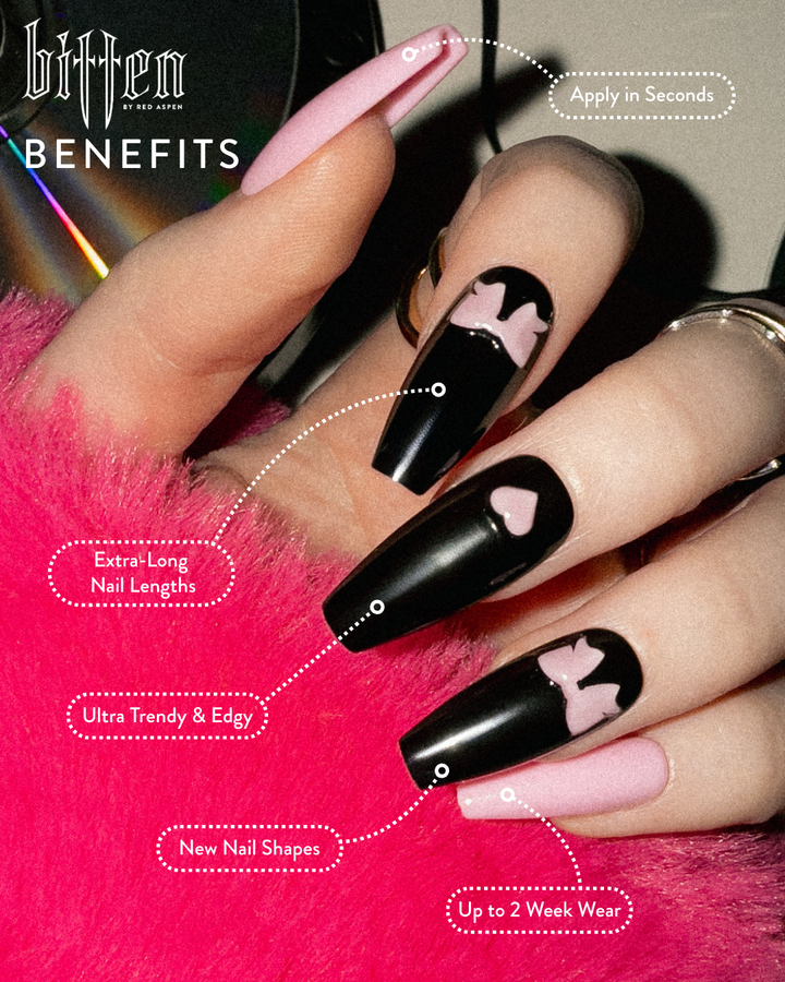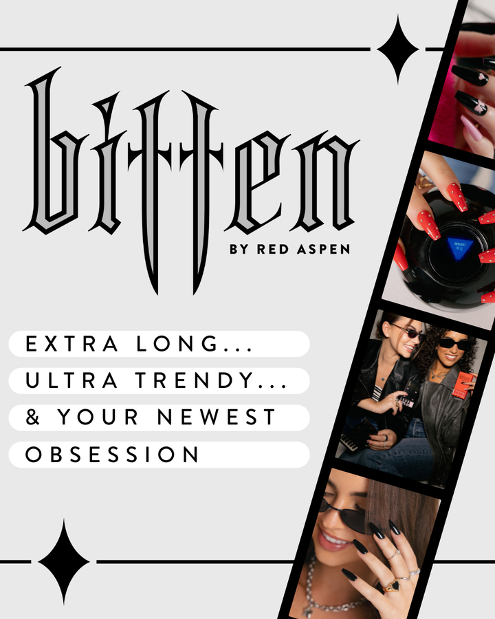 Bitten Nail Dashes are Red Aspen's newest press-on nail collection. They feature trendy, longer shapes, lengths, and designs and expand our Nail Dash offerings so there’s Dashes to fit any aesthetic!