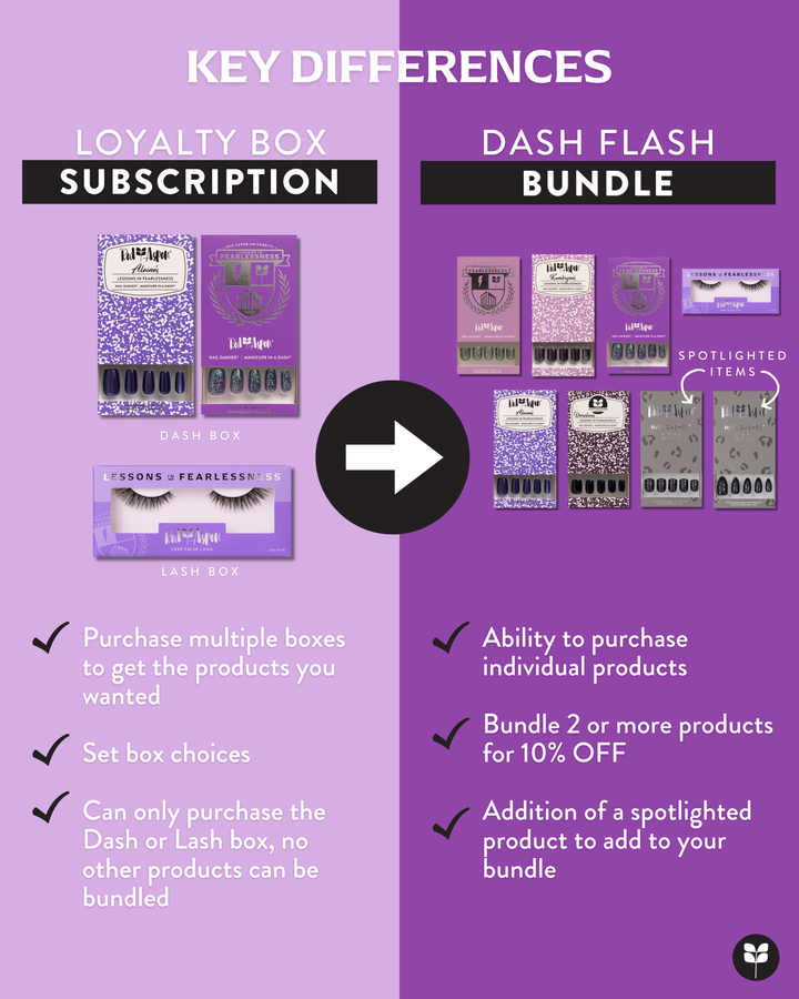 The Dash Flash Collection is a revamp of our Loyalty Box Subscription. The collection will launch on the second day of each month. Dash Flash will also include a spotlighted item each month to create a fun surprise! You now have the option to buy any collection item individually at full price, or you can buy two or more items from the collection and get 10% off of your own custom bundle. The bundle promo will run for 72 hours, and then the products will be available at full price.