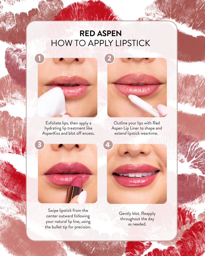 Optional: Line lips with Red Aspen Lip Liner for added definition, longer wear, and/or bolder looks.