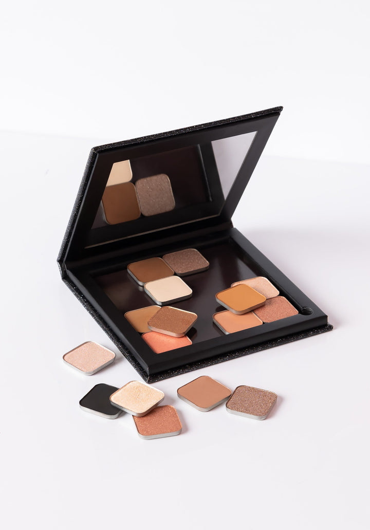 - Select your preferred pressed powders and place them neatly in the palette, where the magnets will hold them in place.