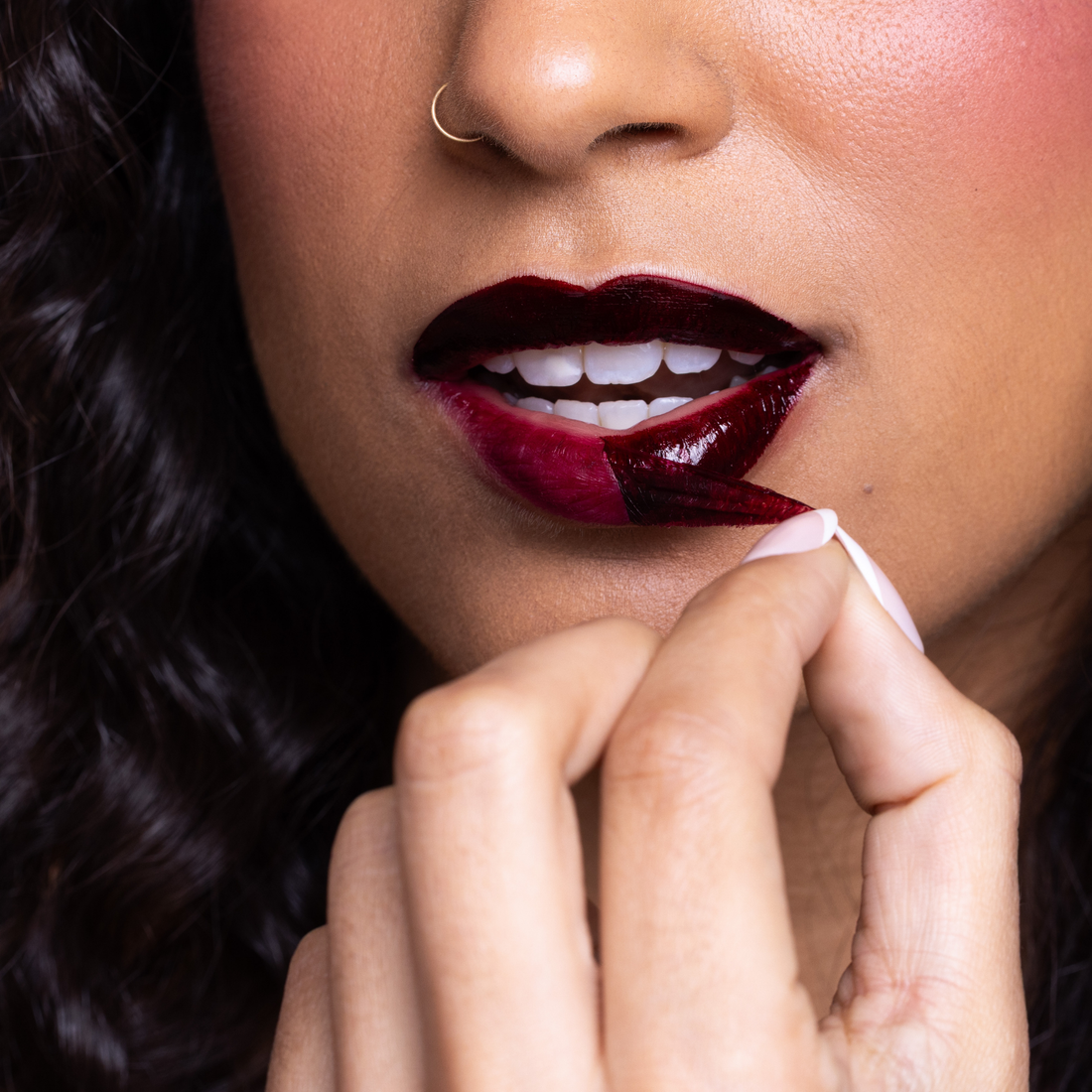 - Dry & Peel: Let dry for up to 10 minutes, then gently create an edge at the corner of your lip and peel off slowly. (The longer Lip Stain sits on your lips, the bolder the color!)