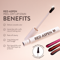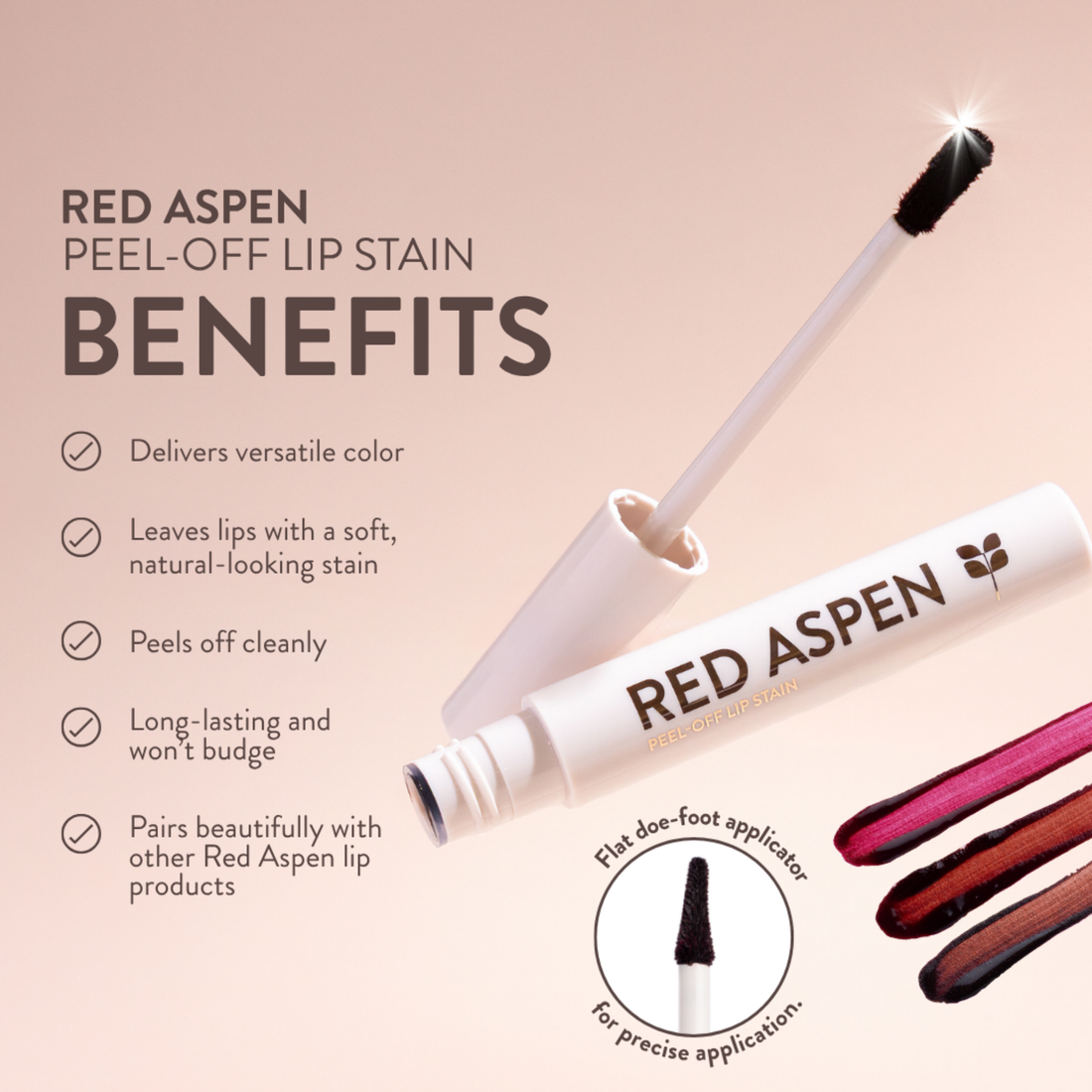 Peel-Off Lip Stain shades pair beautifully with Red Aspen Lip Gloss, AspenKiss Peptide Lip Treatments, and Red Aspen Lipsticks.